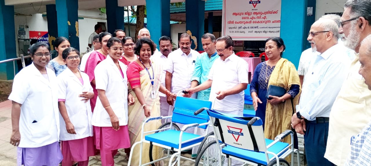 ആലുവ വൈ.എം.സി.എ ജില്ല ആശുപത്രിയിലേക്ക് വീൽ ചെയറുകൾ കൈമാറി.