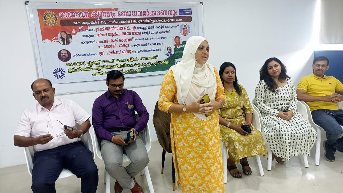 കൊച്ചി: ഗാന്ധിജയന്തി വാരാഘോഷത്തിന്റെ ഭാഗമായി ഇൻഫർമേഷൻ ആൻ്റ് പബ്ലിക് റിലേഷൻസ് വകുപ്പ്, കൊച്ചിൻ സൗത്ത് റോട്ടറി, എറണാകുളം ഐ എം എ എന്നിവരുടെ സംയുക്ത ആഭിമുഖ്യത്തിൽ എറണാകുളം എലാൻസ് ഇൻസ്റ്റിറ്റ്യൂട്ടിൽ രക്തദാന ക്യാമ്പും രക്തദാന ലഹരിവിരുദ്ധ ബോധവൽക്കരണ സെമിനാറും സംഘടിപ്പിച്ചു. കൊച്ചി കോർപ്പറേഷൻ ഡെപ്യൂട്ടി മേയർ കെ എ അൻസിയ ക്യാമ്പ് ഉദ്ഘാടനം ചെയ്തു.